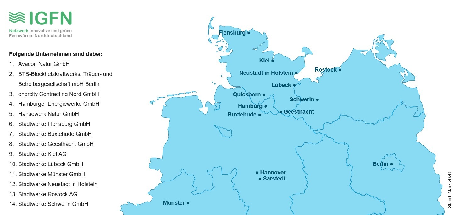 Das Netzwerk „Innovative und grüne Fernwärme Norddeutschland“ verbindet Versorgungsunternehmen aus dem norddeutschen Raum mit dem Ziel, Ideen und Erfahrungen zur klimaneutralen Gestaltung von Fernwärmenetzen auszutauschen und Lösungsansätze voranzutreiben. Initiiert wurde das Netzwerk vom Hamburg Institut.